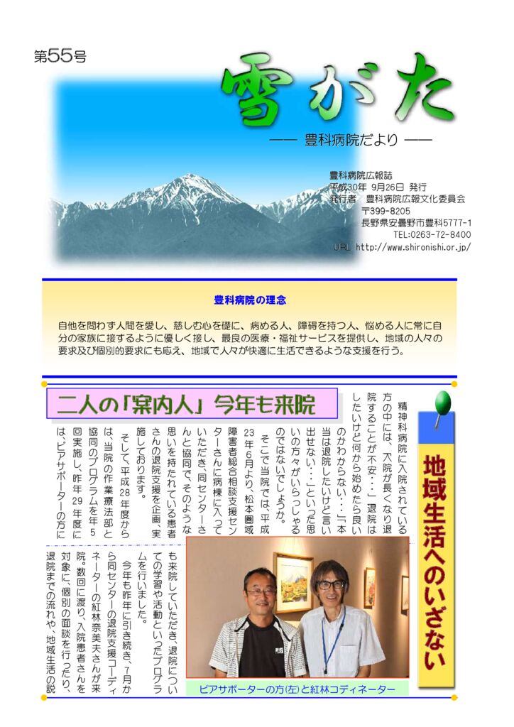 広報誌「雪がた – 豊科病院だより -」第55号を更新しました。(平成30年9月26日) 2018.09.26 広報誌「雪がた – 豊科病院だより -」第54号を更新しました。(平成30年7月4日)広報誌「雪がた – 豊科病院だより -」第56号を更新しました。(平成30年11月5日)