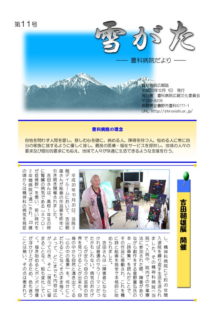 広報誌「雪がた – 豊科病院だより -」第11号を更新しました。(平成20年12月1日) 2008.12.01 広報誌「雪がた – 豊科病院だより -」第10号を更新しました。(平成20年6月1日)広報誌「雪がた – 豊科病院だより -」第12号を更新しました。(平成21年2月1日)