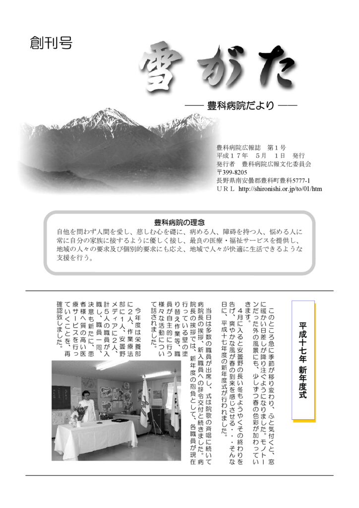 広報誌「雪がた – 豊科病院だより -」第01号を更新しました。(平成17年5月1日)