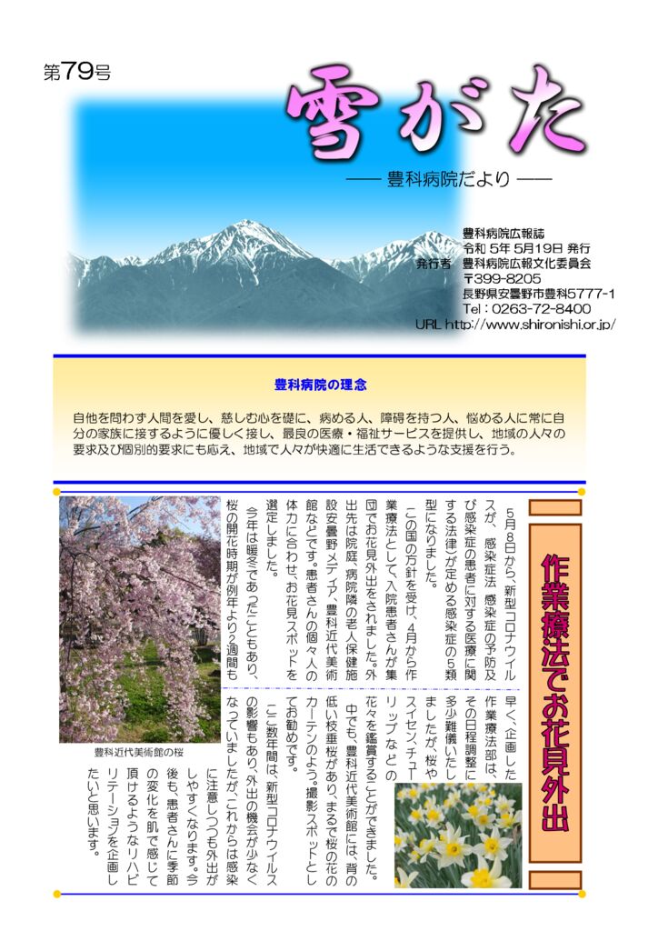 広報誌「雪がた – 豊科病院だより -」第79号を更新しました。(令和5年5月19日) 2023.05.19 広報誌「雪がた – 豊科病院だより -」第78号を更新しました。(令和5年2月22日)作業療法士の求人を追加しました。