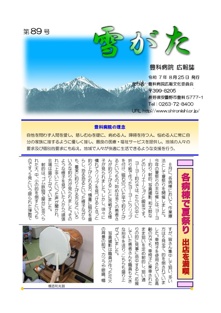 広報誌「雪がた – 豊科病院だより -」第89号を発行しました。(令和7年8月25日)